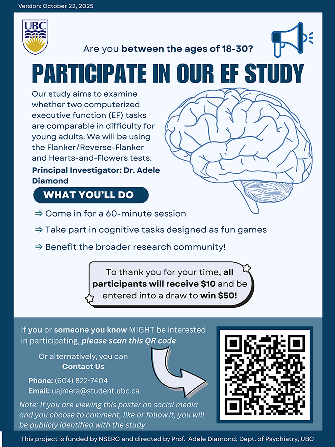 This project is funded by NERSC and directed by Prof. Adele Diamond, Dept. of Psychiatry, UBC.